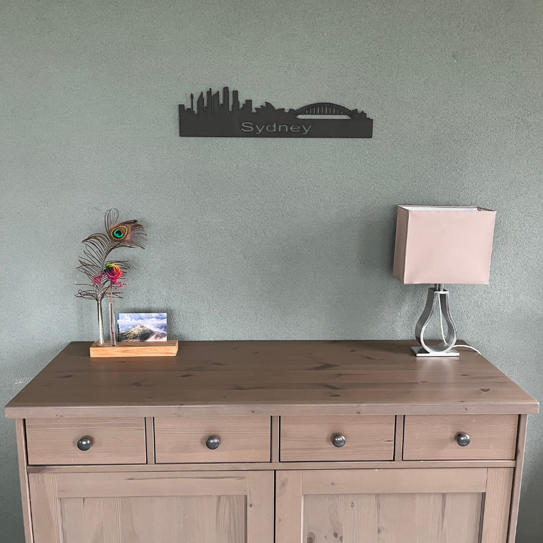 Ik ben gefascineerd bent door de iconische skyline van Sydney. Als je hier bent geweest en net zo genoot van de stad en het land als ik, dan past deze Skyline prima in jouw woonkamer. Met de gedetailleerde silhouetten van de beroemde gebouwen en kenmerkende bezienswaardigheden van de stad, brengt deze wanddecoratie de energie van Sydney naar jouw woonkamer.